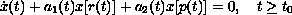 \dot{x}(t) +a_1(t)x[r(t)]+a_2(t)x[p(t)]=0, \quad t\geq t_0