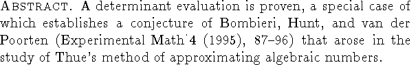 Proof of a Determinant Evaluation Conjectured by Bombieri, Hunt and van der Poorten