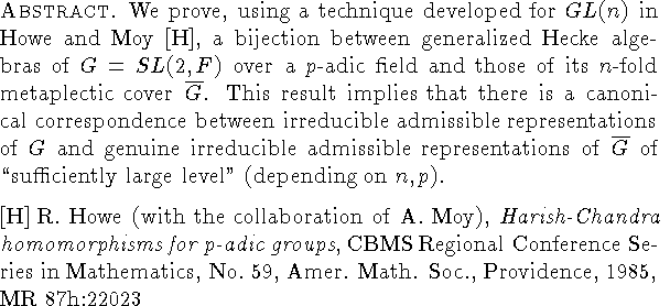 metaplectic groups, generalized Hecke algebras, representation theory, p-adic groups, SL(2)