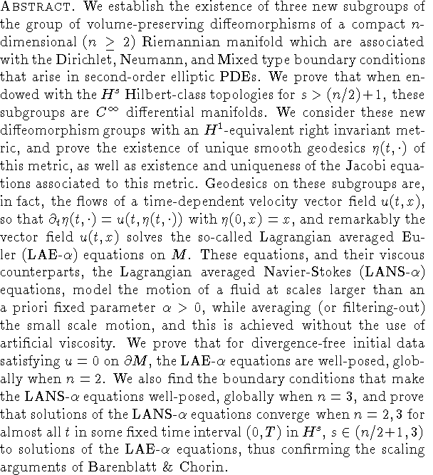 so-called Lagrangian averaged Euler (LAE-$\alpha$) equations on $M$.