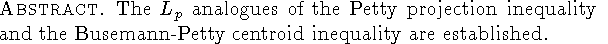 The $L_p$ analogues of the Petty projection inequality and the Busemann-Petty centroid inequality are established.
