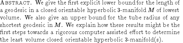 the least volume closed orientable hyperbolic 3-manifold(s).