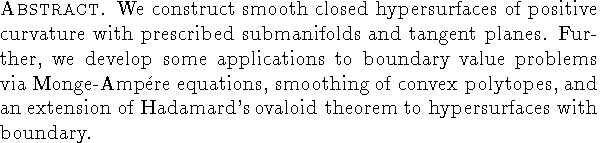 We construct smooth closed hypersurfaces of positive