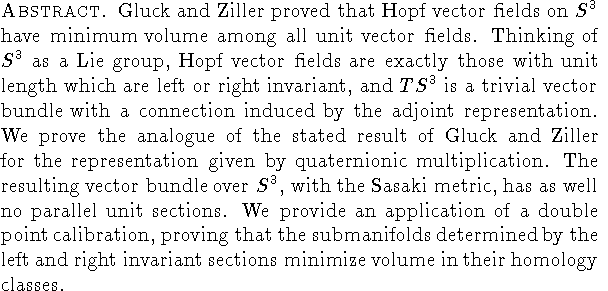 volume among all unit vector fields. Thinking of $S^{3}$ as a Lie group,