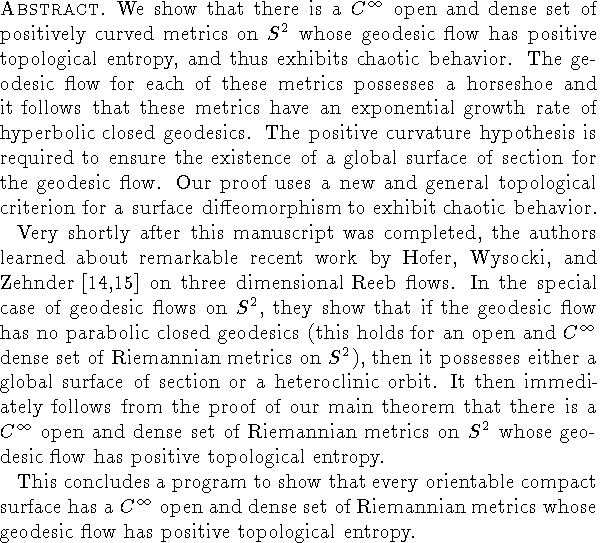 $S^2$ whose geodesic flow has positive topological entropy.\\
