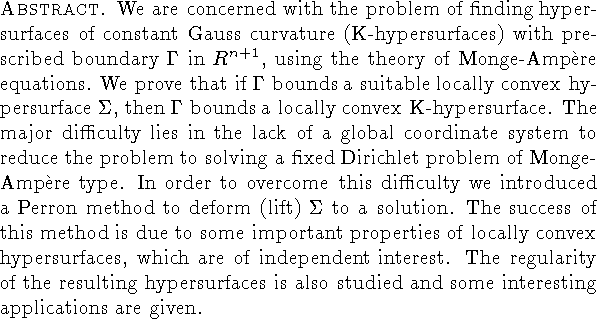curvature (K-hypersurfaces) with prescribed boundary $\Gamma$ in $R^{n+1}$,