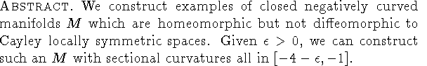 We construct examples of closed negatively curved manifolds $M$ which are homeomorphic but not diffeomorphic to Cayley locally symmetric spaces. Given $\epsilon > 0$, we can construct such an $M$ with sectional curvatures all in $[-4-\epsilon,-1]$.