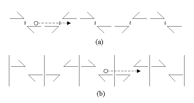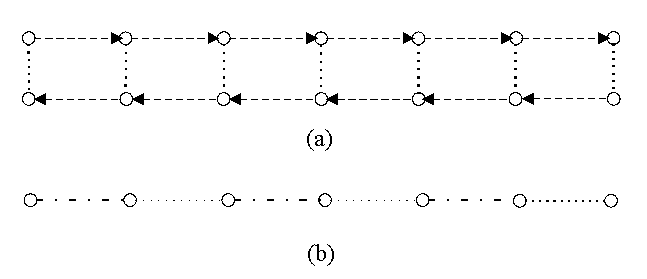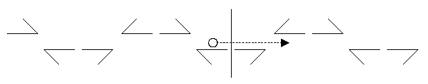 Since the set P,R1 is a generator set of the group mg, after concluding that the reflection line of R1 is perpendicular to the axis of the glide reflection P, we can construct an appropriate ornamental motif, the visual model of the frieze symmetry group mg. This is achieved by applying the transformations P and R1 to the chosen asymmetric figure, which belongs to a fundamental region of the symmetry group mg (Figure 1.19).