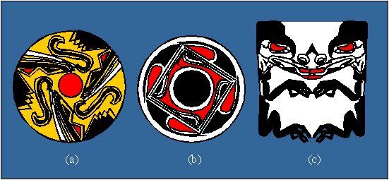 Examples of rosettes with the symmetry group (a) C3 (3); (b) C4 (4); (c) D1 (m) in the art of American Indians. The rosette (c) represents an example of the "development" of the body, that results in the symmetry D1 (m). |