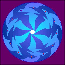 Distinct from the previous type, type Cn (n) consists of the symmetry groups to which correspond visually dynamic rosettes with a polar singular direction of rotation, occurring in two enantiomorphic modifications. For ornamental art, enantiomorphic ("left" and "right") modifications of rosettes, which produce an impression of the "left" and "right" rotations, introduce the possibility to suggest motion. Depending on the orientation, the same enantiomorphic rosettes may even have different symbolic meanings. The suggestion of motion can be stressed by using forms with acute angles oriented toward the direction of rotation.