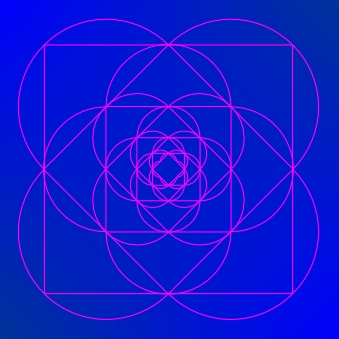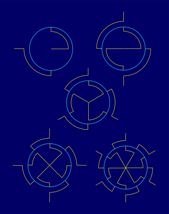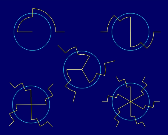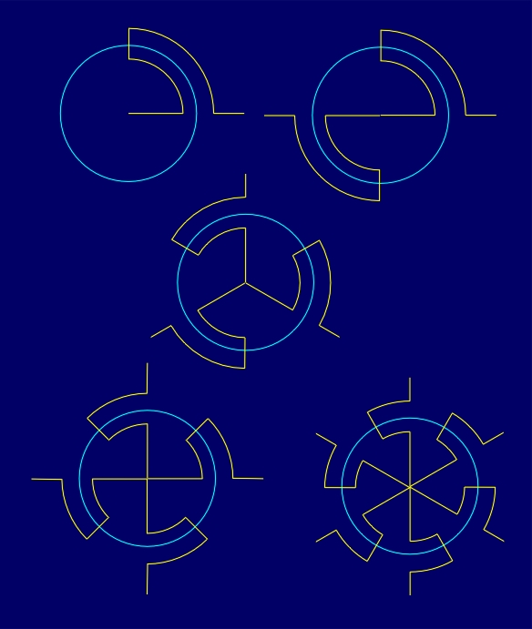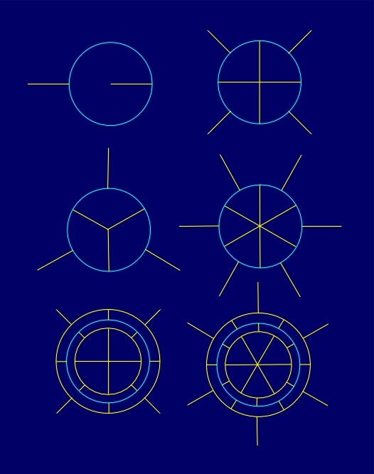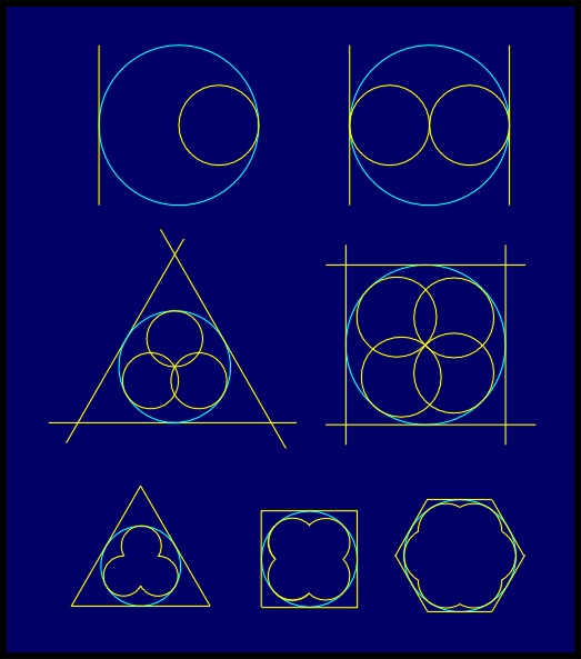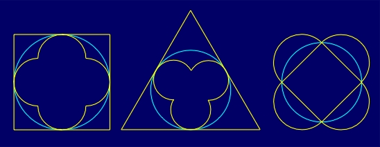 geometric figures (regular polygons, circles) with a common singular point,