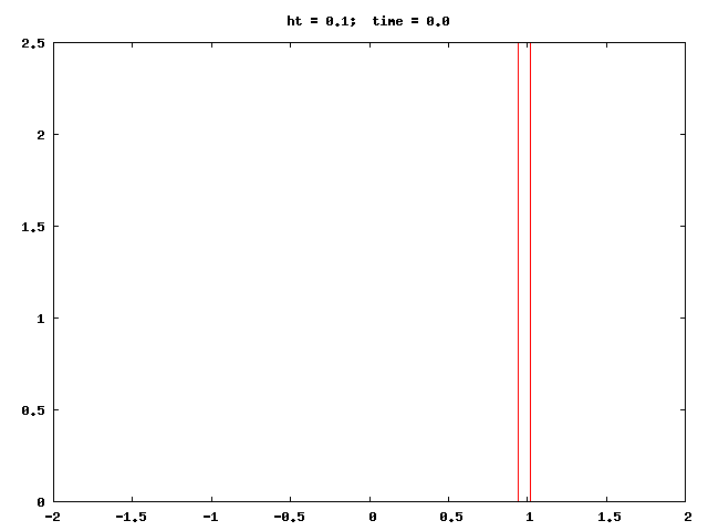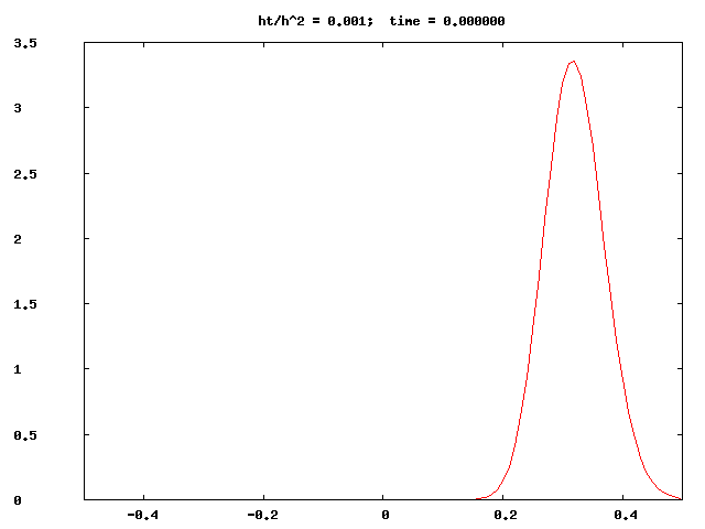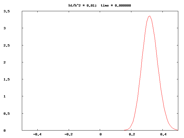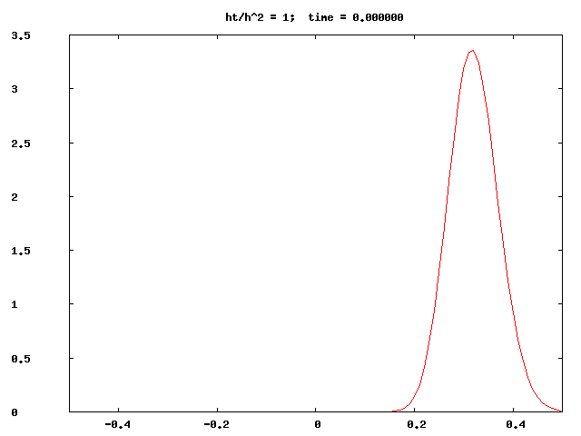 Example: implicit schemes such as BTCS (btcs.cpp) and Crank-Nicolson (cn_map.cpp) are, unlike FTCS, unconditionally stable. The latter program generates datafiles suitable for making 2D probability maps with gnuplot, see the script map.gpl.