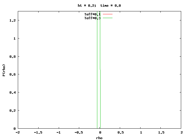Similar movies with two distributions at different temperatures, in the linear and logarithmic scales.